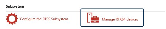 - In RTX64 Control Panel, under Subsystem, click Manage RTX64 devices to launch Device Manager.