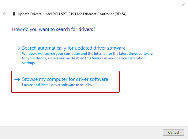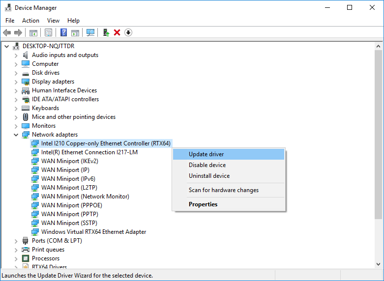 - In Device Manager, expand Network adapters, right-click the network card that includes RTX64 in its name, and then click Update driver.