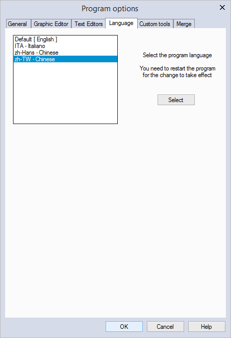 - In the Program options dialog box, click the Languages tab.