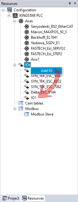 - The automatically created simulated axes and I/Os won't be displayed in the Resources panel. You can use KINGSTAR Configuration Tool to check them.