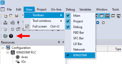 KINGSTAR toolbar contains commands that is specific to KINGSTAR. By default, this toolbar displays when you create or open a project. To display or hide the toolbar, on the View menu, click Toolbars > KINGSTAR.