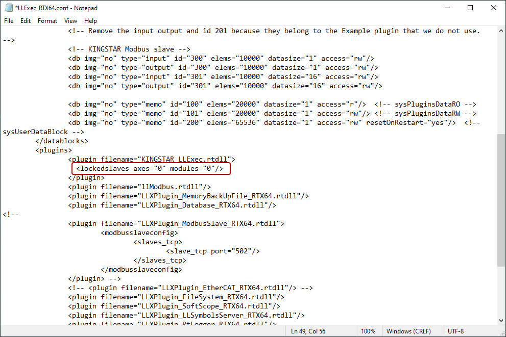 file, find the line of code<lockedslaves axes="0" modules="0"/>