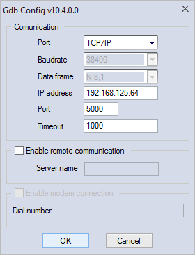 In LogicLab, on the On-line menu, select Set up communication. Click GDB and click Properties. In the IP address box, enter the Windows IP address of the computer that has installed KINGSTAR Runtime, and click OK. Remember to open the port 5000 on the remote computer.