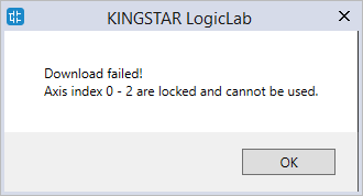 file. Because we lock three axes, LogicLab notifies us that Axis 0-2 are locked.