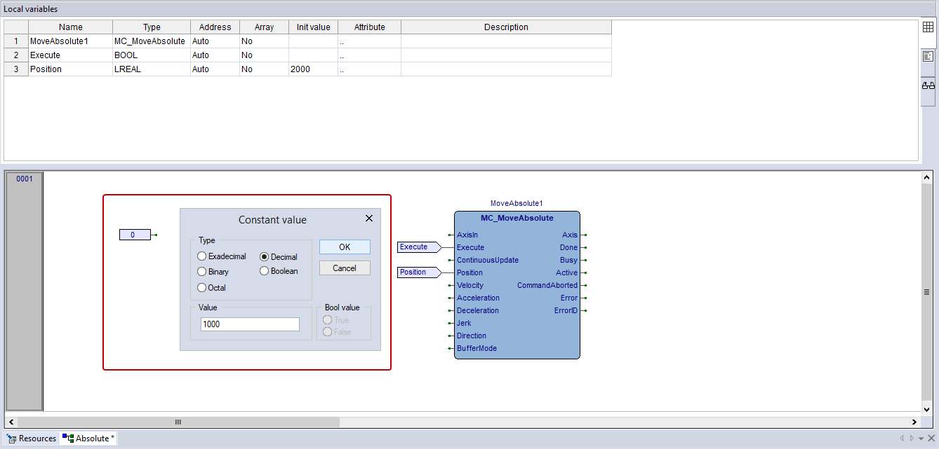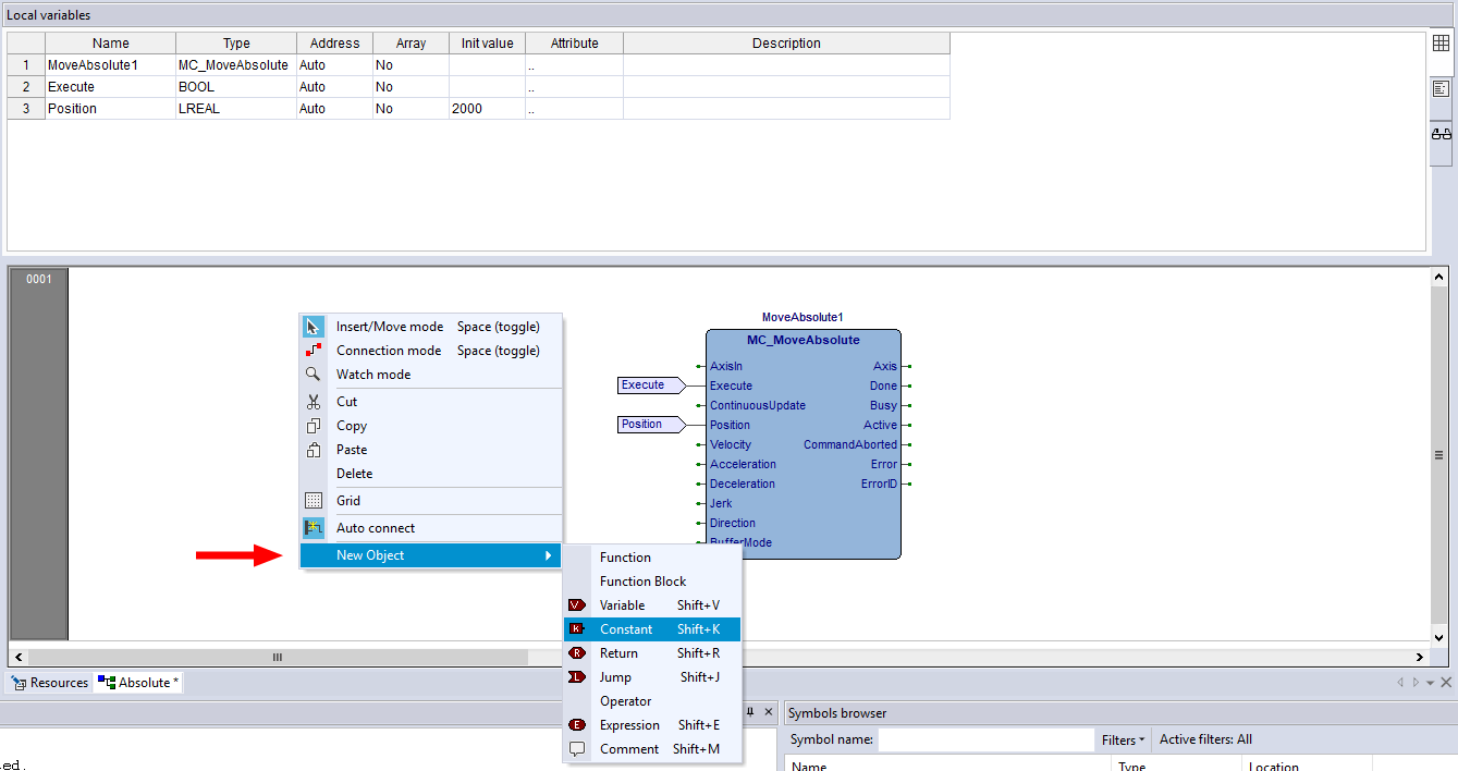 NOTE: You can also add a constant through the FBD Bar. By default, the FBD bar is displayed. If not, on the View menu, click Toolbars > FBD Bar.