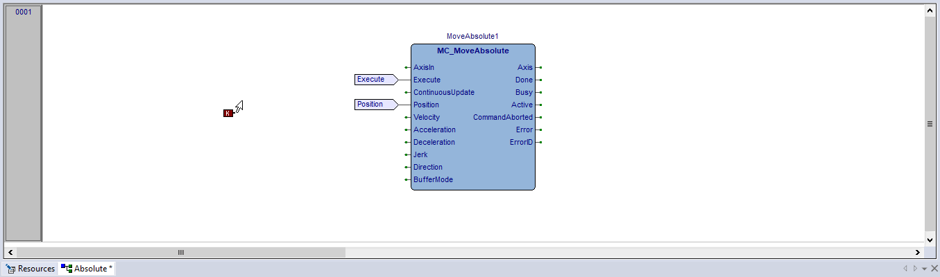 - The mouse pointer attaches a K symbol. Click an empty area in the source editor.