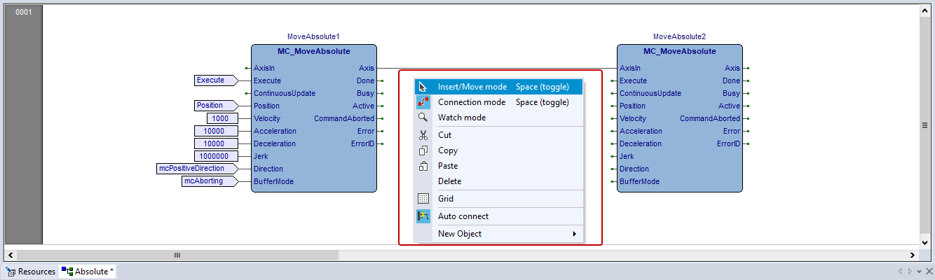 After you connect function blocks, you need to switch to the Move mode so you can perform other actions.