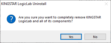 - The system asks whether you want to remove KINGSTAR LogicLab. Click Yes.