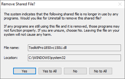 - The system may find a shared file that is no longer in use by other programs and ask whether you want to remove it. If you're sure that file is not used by other programs, click Yes, otherwise click No.