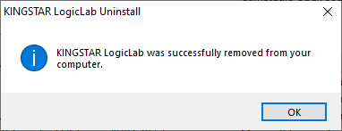- After uninstalling KINGSTAR LogicLab, click OK.