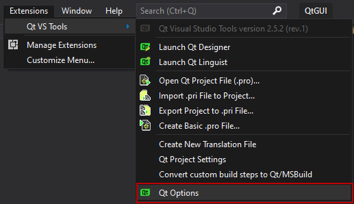 - Start Visual Studio 2019. On the Extensions menu, click Qt VS Tools > Qt Options.