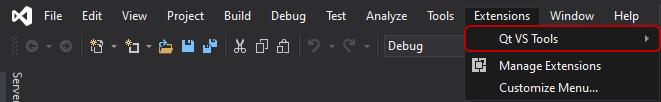 - Start Visual Studio. On the Extensions menu, you can find Qt VS Tools.