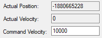 The command velocity is controlled by the TextBox variable tbCMD_VEL, which is the velocity of the jog motion. The default value is 10000. This value is set in the Form1.Designer.vb file and can be changed to meet your needs. You can also change it in the Properties pane.