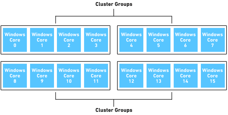 Although most systems with eight or fewer processors do not use cluster groups, some servers (such as those based on the Intel® Xeon® e5506 series processor) automatically force processor clustering.
