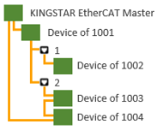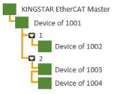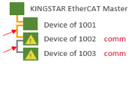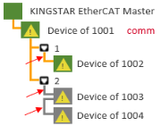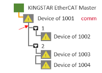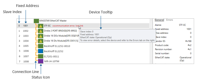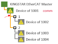 The Device Tree displays the connectivity between the master and slave devices on the EtherCAT network. When there are errors occur or changes in the EtherCAT states of the devices, corresponding error messages and status icons will be displayed for notifications.