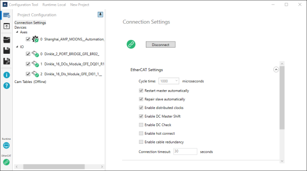You can use the Diagnostic Tool to monitor the connectivity between the master and slave devices on the EtherCAT network. When there are errors occur or changes in the EtherCAT states of the devices, corresponding error messages and status icons will be displayed for notifications. The status will be dynamically displayed and updated every second.