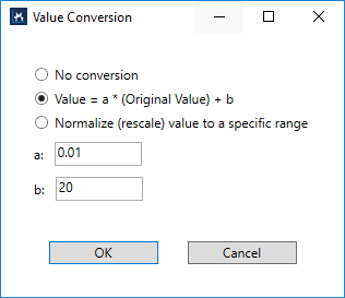 Value = a * (Original Value) + b: use the equation to convert your value. For example, you have the following settings for the equation:
