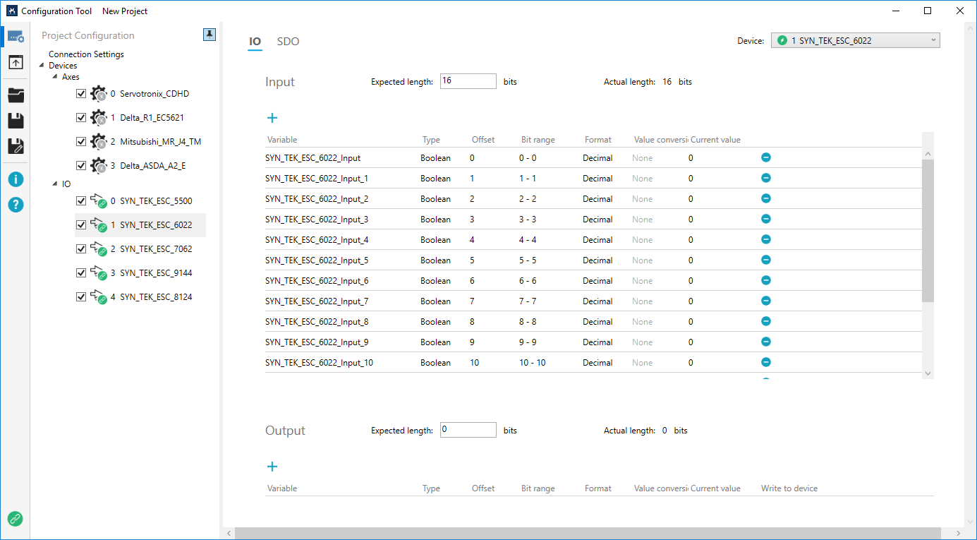 Blue plus (): adds a new variable to the input or output. If the input or output can't accept the variable, Bit range and Current value will be displayed in red.
