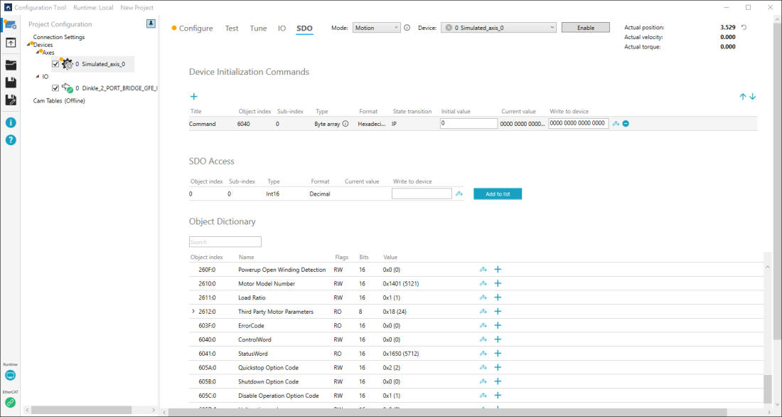Provides data access to the device through Service Data Object (SDO). The SDO settings for the axis and I/O module are the same.
