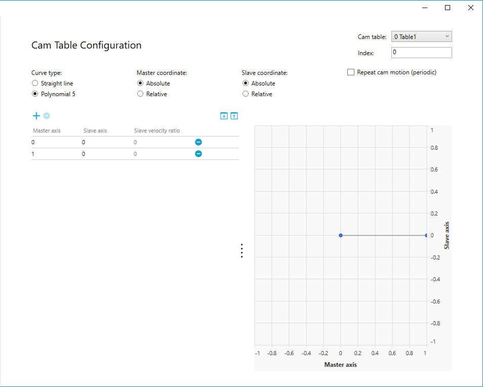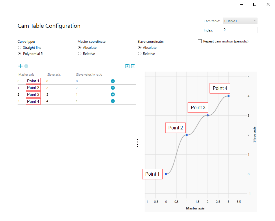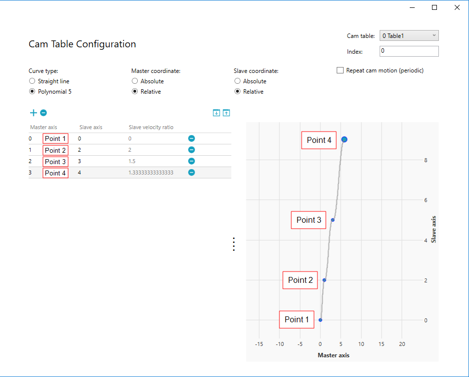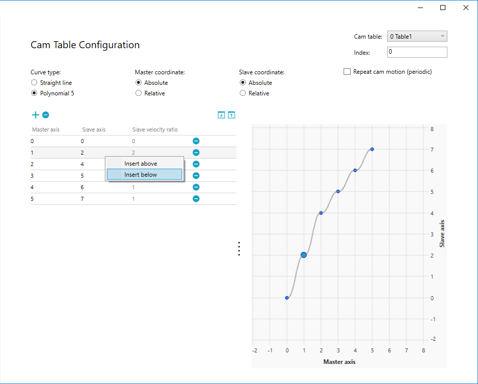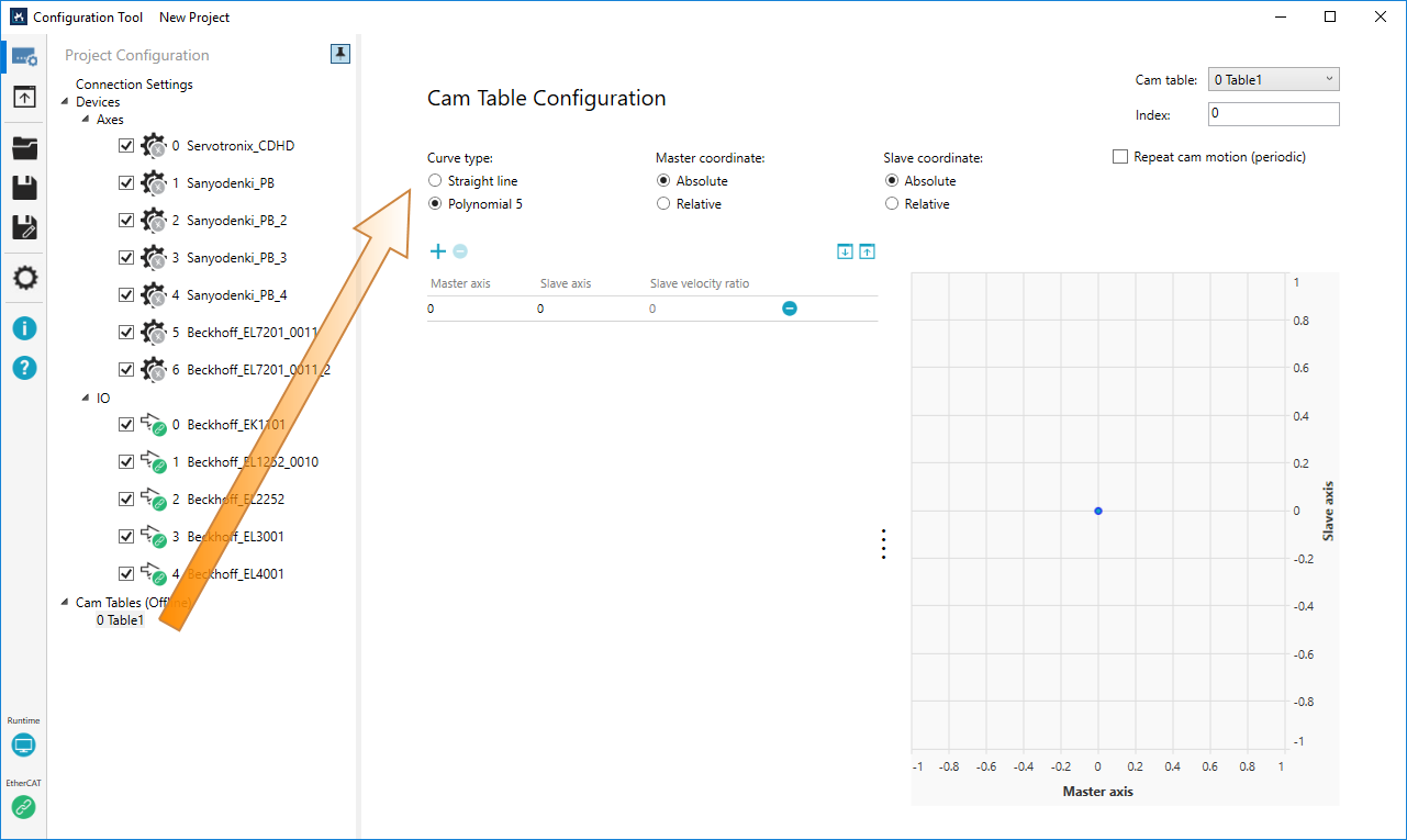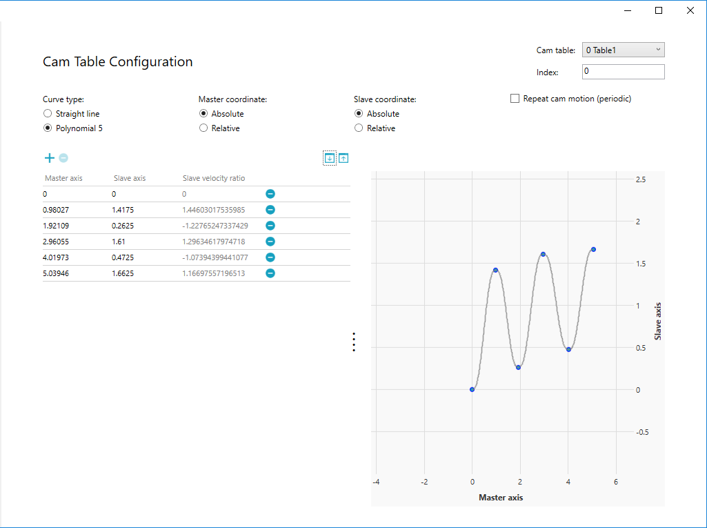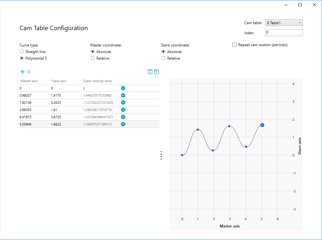In this guide, we select Polynomial 5, Master Absolute, Slave Absolute, and non-periodic. After the selection is done, click
