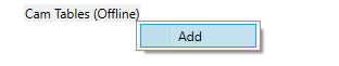 - On the Project Configuration list, right-click Cam Tables and click Add.