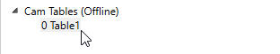- On the Project Configuration list, click the cam table's name.