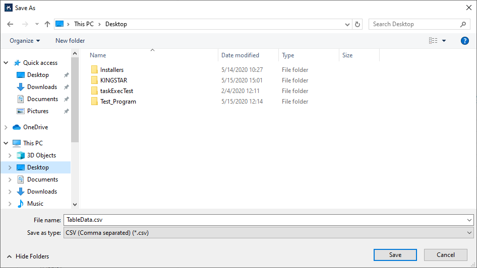 ). - In the Save As dialog box, click Save to save the file as .csv.