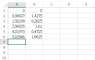- Open the .csv file. You'll see two columns. From left, the first column contains the positions of Master axis and the second contains those of Slave axis.