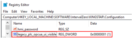 To show the OPC UA Server section, you can add a registry value under Computer\HKEY_LOCAL_MACHINE\SOFTWARE\IntervalZero\KINGSTAR\Configuration and then restart the app.