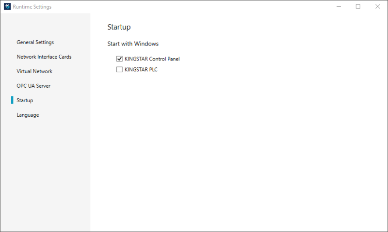 KINGSTAR PLC: turns on KINGSTAR PLC at Windows startup. For further details, see System controls.