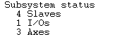RtPrintf("Subsystem status\n %d Slaves\n %d I/Os\n %d Axes\n\n",