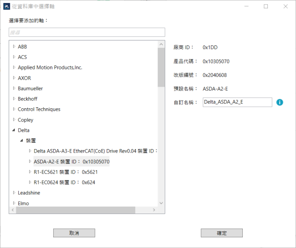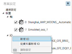 手动新增装置设定工具无论在线上或离线状态时皆可手动新增轴与 I/O 装置。