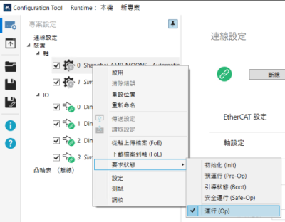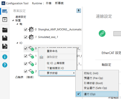右键选单右键点击一个装置(轴或 IO)可显示其右键选单。