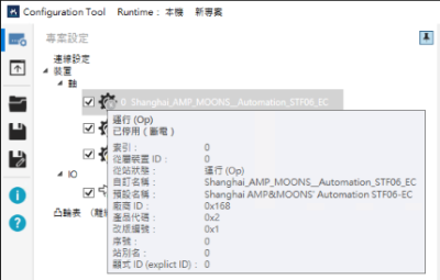 工具提示工具提示 (Tooltip) 快显视窗可用来显示装置的基本资讯。将滑鼠游标停在轴或 I/O 模组上即可自动显示工具提示快显视窗。
